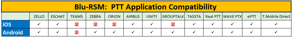 The Blu RSM is compatible with a variety of ZEBRA and other devices and ptt applications.