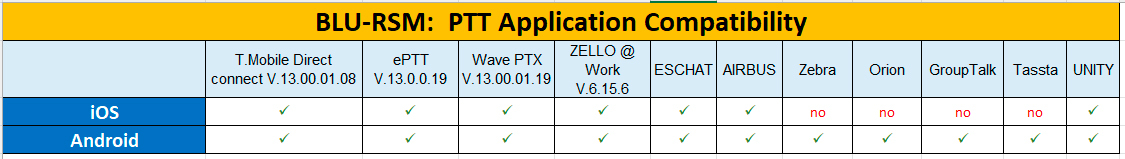 The Blu RSM is compatible with a variety of ZEBRA and other devices and ptt applications.